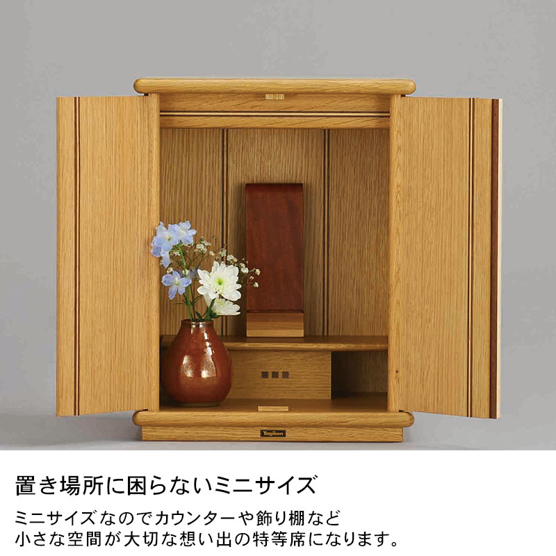 | 商品説明 | 【商品コード:1716】 ■材質詳細 ・材質/ナラ、メープル、ウォールナット ・仕上/ウレタン塗装 ■宗派 どの宗派でもお使いいただけます。 ■備考 ・掲載写真の仏具などの組み合わせは一例で別売りとなります。 コンパクトで置き場所を選ばないミニ仏壇。趣のあるナラ材にメープル材を組み合せ、おしゃれな縦ラインをデザインしました。和室にもリビングにも調和して違和感がありません。 |