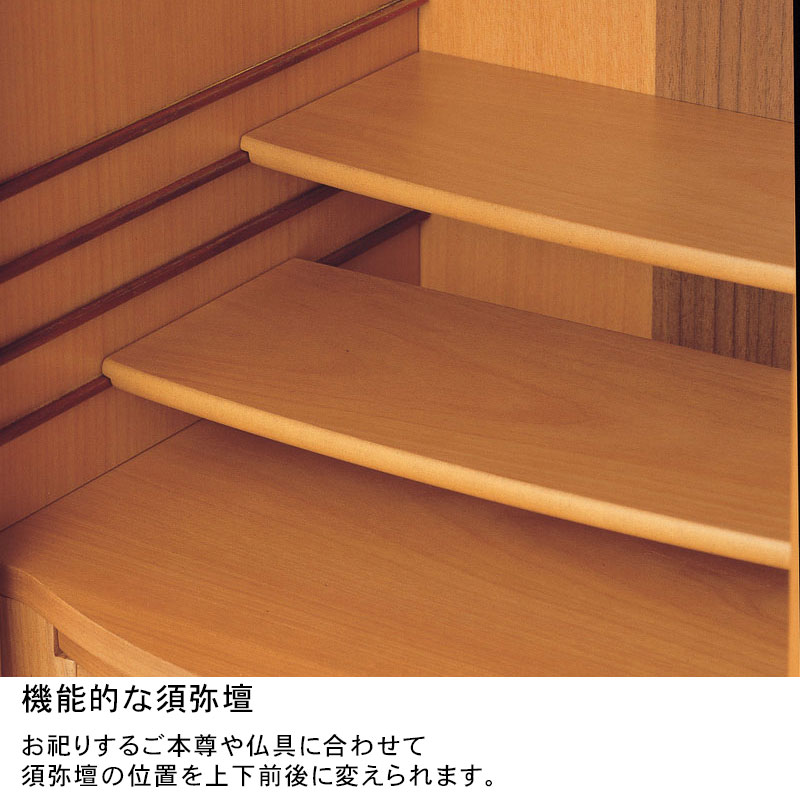 | 商品説明 | 【商品コード:2875】 ■材質詳細 ・材質/サクラ・ウォールナット ・仕上/ウレタン塗装 ■宗派 どの宗派でもお使いいただけます。 ■備考 ・掲載写真の仏具などの組み合わせは一例で別売りとなります。 上下前後に位置を変えられる機能的な須弥壇。柔らかさと温かさを感じさせるデザインです。 |