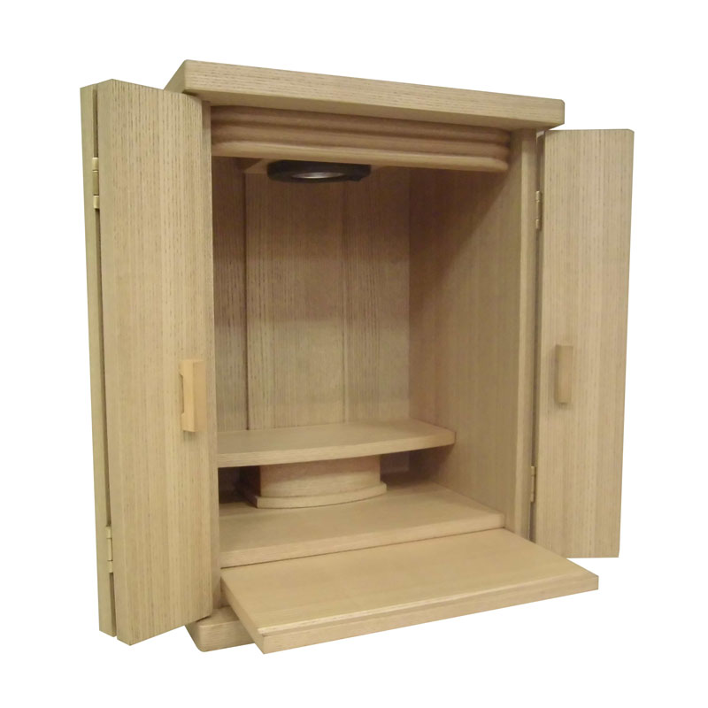 | 商品説明 | 【商品コード:2940】 ◎日本堂オリジナル商品 ■材質詳細 ・笠、台輪/主材料:タモ薄板貼り 芯材料:MDF ・戸板、扉/主材料:タモ薄板貼り 芯材料:MDF ・その他/表面仕上げ:ウレタン仕上、生産地:海外 ■宗派 どの宗派でもお使いいただけます。 ■備考 ・商品は手作りの為、一部の色、デザイン、寸法が多少変更になる場合がございます。 コンパクトさが特徴の14号サイズのお仏壇となっております。 現代の住空間に合うサイズ感で、木目を活かしたシンプルなつくりは和洋室どちらにも合うデザインとなっております。 内部の須弥壇は取り外しが可能で、ご本尊や掛軸の大きさに合わせて高さを変えることができます。 また、お仏壇のお手入れがしやすく、奥の方の細かな部分まで、しっかりお手入れして頂くことが出来ます。 タモ材を表面材に使用し馴染みやすい色合いで、洋室やリビングにも自然に溶け込む家具調仏壇となっております。 膳引きは、スライド式となっており、お祀りいただいた仏具をそのまま中に収納して扉を閉めることができます。 内部照明には、LEDライトを採用し暗いお部屋や夜間でも明るく照らします。 |