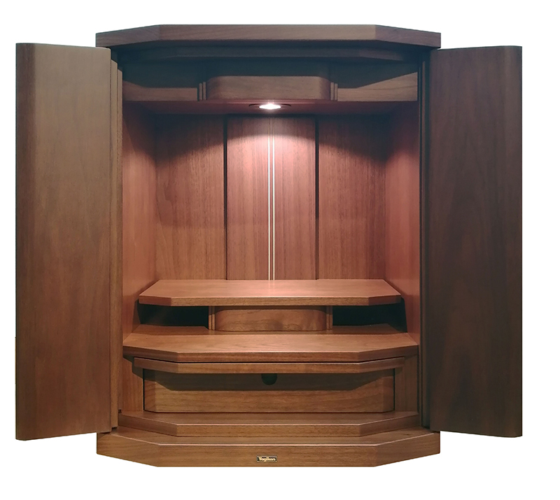 | 商品説明 | 【商品コード:3091】 ■材質詳細 ・材質/ウォールナット ・仕上/ウレタン塗装 ・仕様/引き出し付き ・須弥壇の取り外し可能 ・ストレートヒンジ使用 ■宗派 どの宗派でもお使いいただけます。 ■備考 ・掲載写真の仏具などの組み合わせは一例で別売りとなります。 ウォールナットの無垢をシンプルな造形で仕上げました。 |