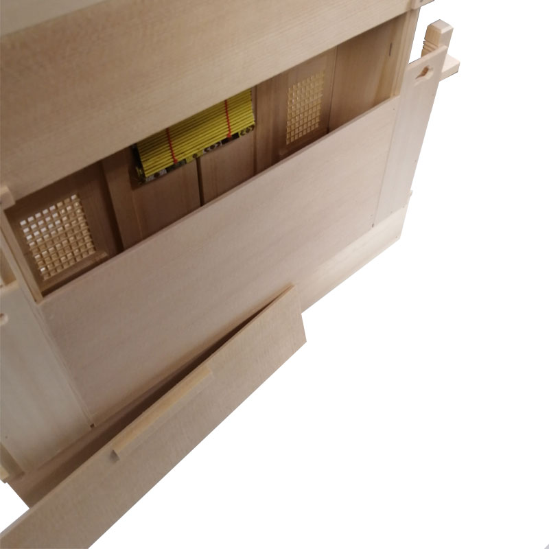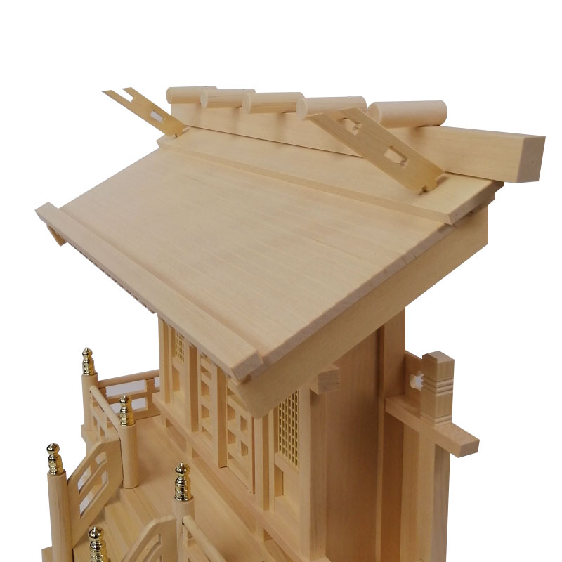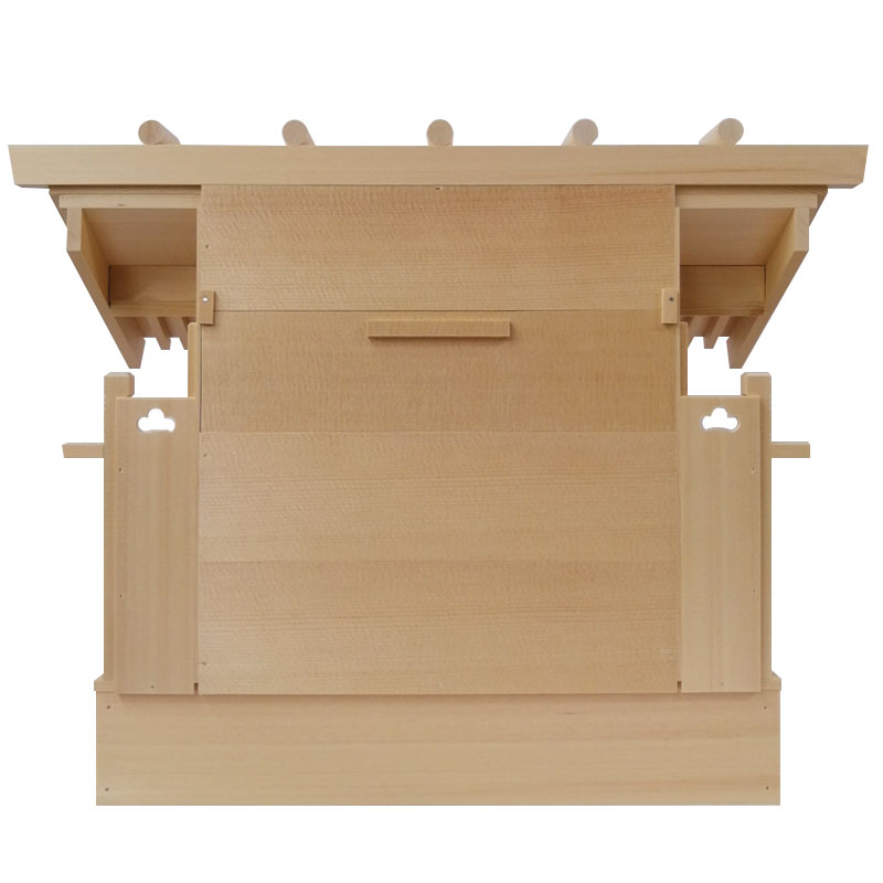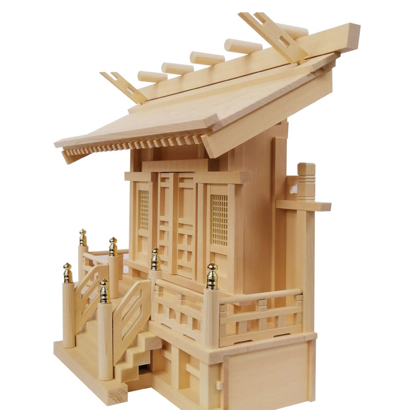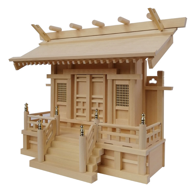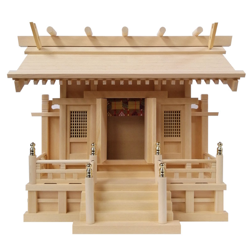 | 商品説明 | 【商品番号:3105】 ■商品詳細 【1.5尺】 ・外寸法:高さ約41cm×巾約52cm×奥行約20cm ・内部寸法:高さ約26cm×幅約27cm×奥行約5cm ■備考 ・商品は手作りの為、一部の色、デザイン、寸法が多少変更になる場合がございます。 屋根がひとつですっきりとしたデザインの通し屋根三社です。 正面の扉は開閉ができ、扉を開けると御簾(みす)が上品な御宮となっております。 お神札は裏面の背板の一部が上にスライドさせて取り外しでき、並べてお祀り出来ます。 屋根の左右の千木は差し込み式で、社の回廊部分は三段の組高欄(くみこうらん)造りとなっております。 扉のデザインは手の込んだ唐戸でご用意致しました。扉が開け閉め出来ます。 お札の納め方は、中心に「天照皇大神宮」向かって右側に「氏神様」左側に「崇敬神」と言う順でお納めします。 |