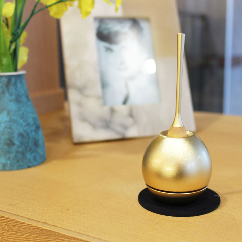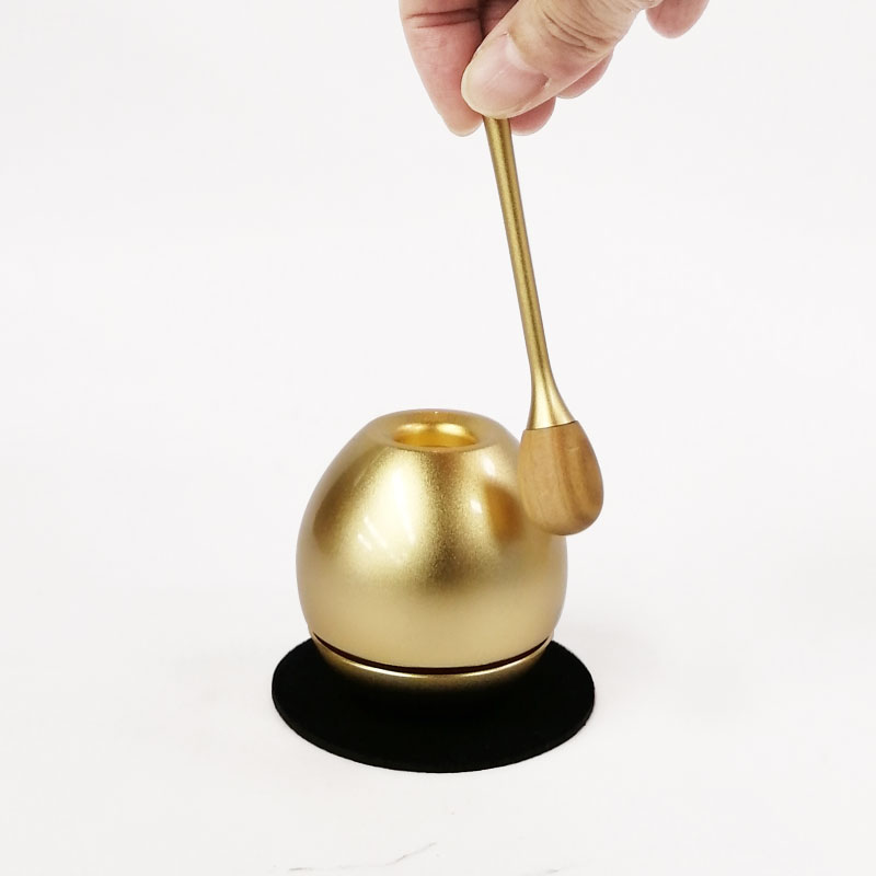 | 商品説明 | 【商品番号:3194】 ■商品詳細 ●商品サイズ: 1.8寸/φ5.5cm、高さ12.9cm ●素材: リン/真鍮 リン棒先端木部/さくら さくらんぼのような形が愛らしい「Cherin」は、コンパクトで場所を取りませんし、佇まいはまるでオブジェのよう。 上部の穴にりん棒を立てておさめるようになっていますが、叩いた後すぐにりん棒を戻しても、音が鳴り止むことはありません。 黒色の敷布の上に置くことで、より美しい音色を響かせることができます。 祈りを特別なものではなく、リビングや寝室にそっとしつらえて、生前と同じように、家族との団らんの中やパートナーとの語らいで話しかけるように、心を楽に鳴らしてみてください。 |