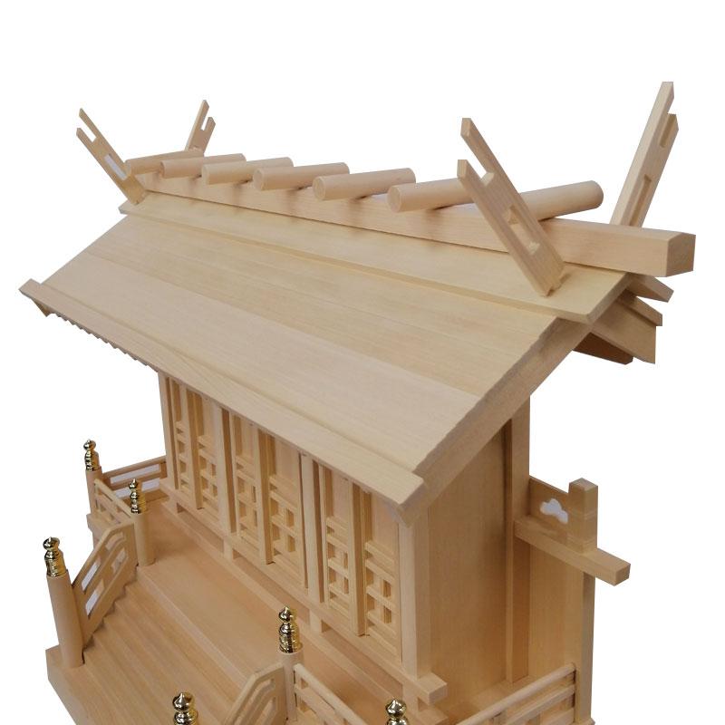 | 商品説明 | 【商品番号:2119】 ■商品詳細 【2.0尺】 145、200円 ・外寸法:高さ約46cm×巾約66cm×奥行約25cm ・内部寸法:高さ約27cm×幅約36cm×奥行約7.5cm ■備考 ・商品は手作りの為、一部の色、デザイン、寸法が多少変更になる場合がございます。 屋根がひとつですっきりとしたデザインの通し屋根三社です。 正面の扉は開け閉めができ、お神札が納めやすいように屋根全体を上に持ち上げて屋根を外すことも出来ますので御札を納める際に便利です。 屋根の左右の千木は差し込み式で、社の回廊部分は三段の組高欄(くみこうらん)造りとなっております。 扉のデザインは手の込んだ唐戸でご用意致しました。扉が開け閉め出来ます。 お札の納め方は、中心に「天照皇大神宮」向かって右側に「氏神様」左側に「崇敬神」と言う順でお納めします。 |