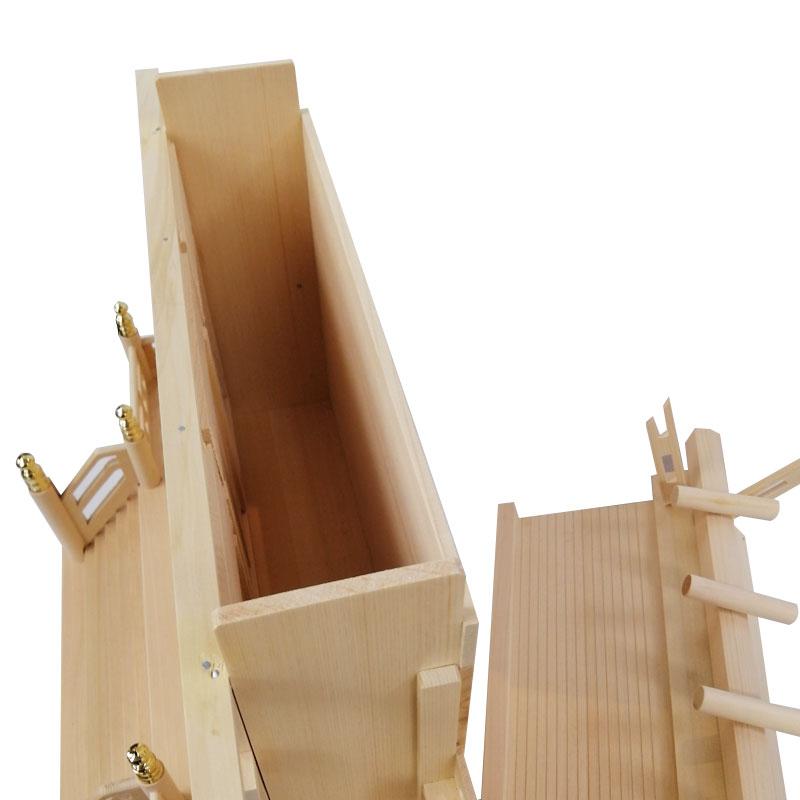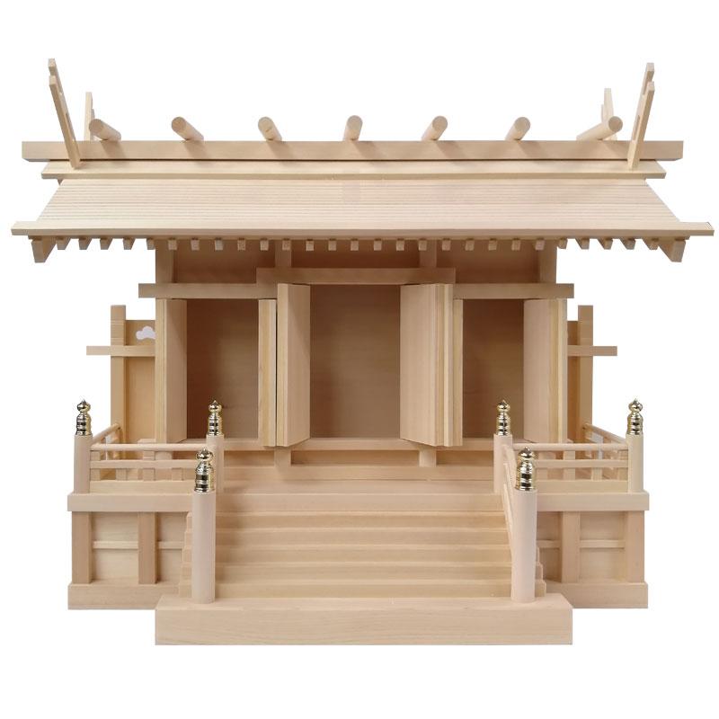 | 商品説明 | 【商品番号:2120】 ■商品詳細 【2.5尺】205、700円 ・外寸法:高さ約54cm×巾約84cm×奥行約26.5cm ・内部寸法:高さ約30cm×幅約42cm×奥行約8cm ■備考 ・商品は手作りの為、一部の色、デザイン、寸法が多少変更になる場合がございます。 屋根がひとつですっきりとしたデザインの通し屋根三社です。 正面の扉は開け閉めができ、お神札が納めやすいように屋根全体を上に持ち上げて屋根を外すことも出来ますので御札を納める際に便利です。 屋根の左右の千木は差し込み式で、社の回廊部分は三段の組高欄(くみこうらん)造りとなっております。 扉のデザインは手の込んだ唐戸でご用意致しました。扉が開け閉め出来ます。 お札の納め方は、中心に「天照皇大神宮」向かって右側に「氏神様」左側に「崇敬神」と言う順でお納めします。 |