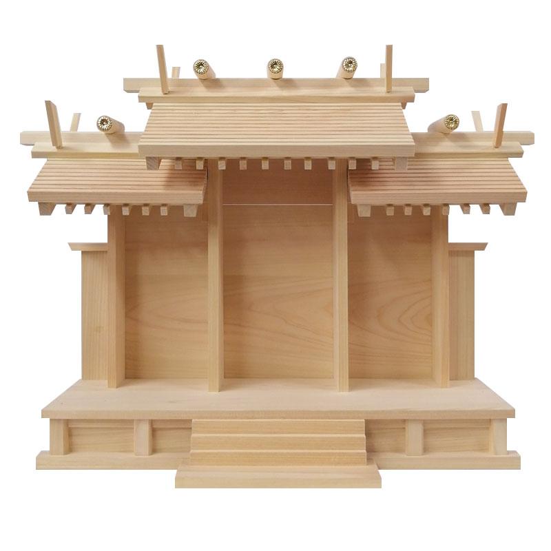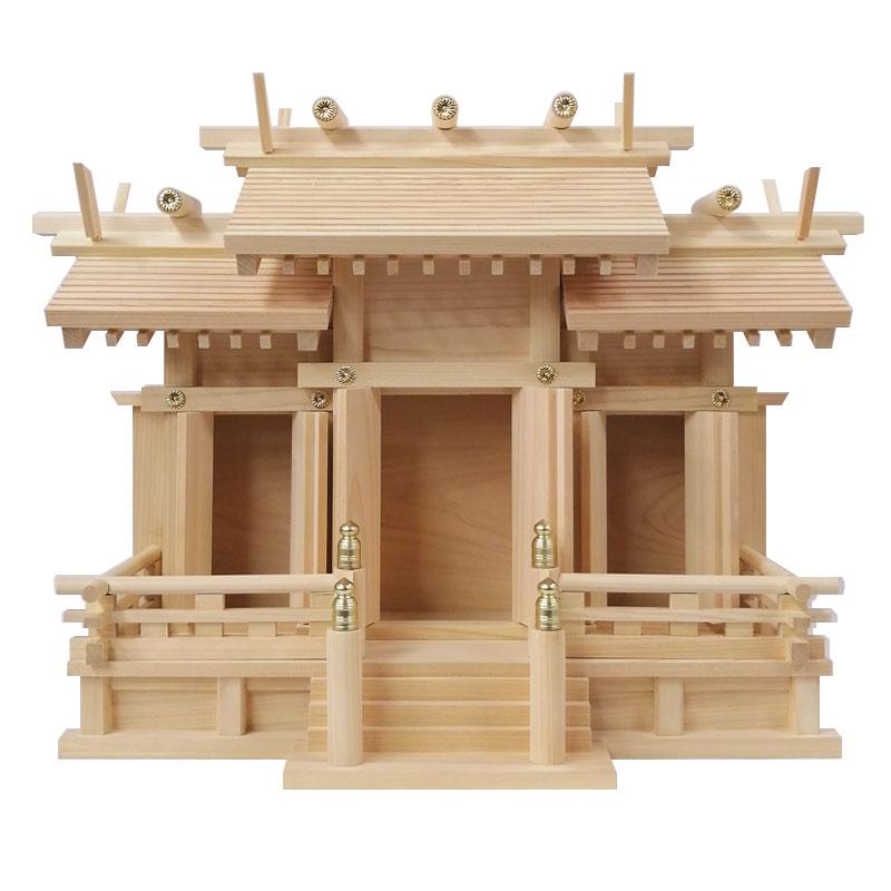 | 商品説明 | 【商品番号:2121】 ■商品詳細 【中】59、800円 ・外寸法:高さ約46cm×巾約64cm×奥行約25cm ・内部寸法: (中央扉)高さ約30cm×幅約15.5cm×奥行約7cm (左右扉)高さ約23cm×幅約11cm×奥行約5.5cm ■備考 ・商品は手作りの為、一部の色、デザイン、寸法が多少変更になる場合がございます。 伝統的な屋根違いの三社宮です。 正面の扉は開け閉めができ、お神札が納めやすいように扉全体を手前に引くと扉を外すことが出来ます。 屋根の左右の千木は差し込み式で、社の回廊部分は三段の組高欄(くみこうらん)造りとなっております。 お札の納め方は、中心に「天照皇大神宮」向かって右側に「氏神様」左側に「崇敬神」と言う順でお納めします。 |