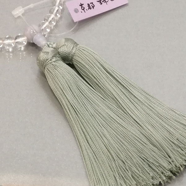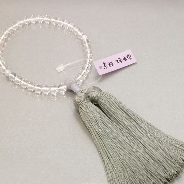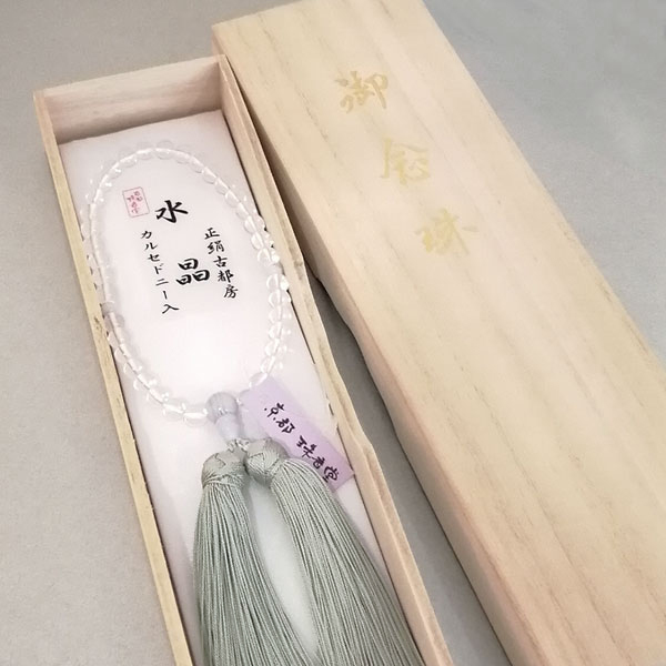| 商品説明 | 【商品コード:3285】 ■珠の素材 ●主珠:水晶(約7mm) ●親珠:カルセドニー(約10mm) ●天珠:カルセドニー(約5mm) ■房の素材 ●正絹古都房(房、通し糸共正絹) ■特徴 主珠に水晶、親珠、天珠にカルセドニーをアクセントとして使った女性用の数珠です。 水晶はクリスタルとも呼ばれ、無色透明な石で、日本の国石(象徴石)にも選ばれています。 カルセドニーは、淡い水色の天然石の表面には穏やかな波模様が現れており、女性らしい柔らかな色合いが品の良さを感じさせてくれます。 カルセドニーは水晶と同じ石英グループの一種で、和名では玉髄(ぎょくずい)といいます。 独特の優しさや色合いが昔から親しまれてきた女性に人気の数珠となっております。 透明な水晶の輝きに、カルセドニーの淡い水色がポイントになり、上品な雰囲気を演出することが出来ます。 頭付松房には高級素材の正絹を使用しており京都の数珠職人が匠の技で仕立てた逸品でございます。 数珠は、寿珠とも言われ縁起のいいプレゼントとして、成人式や就職祝いなどに贈られることが多いようです。 進物用の商品につきましては、包装をしてお届けいたします。 「志」「御祝」などの、のし紙も無料でお付けすることができます。 包装やのし紙をご希望の方は、お客様情報入力ページの「ご連絡事項」欄にご記入ください。 ■宗派 どの宗派でもお使いいただける片手略式数珠です。 ■備考 ●数珠は桐箱入り(桐箱は防腐成分や虫よけの成分を含み、湿気予防にも最適です。保管の際は、防虫剤を一緒に入れると虫食い予防になります。) ●天然素材のため商品には若干の差があります。 |