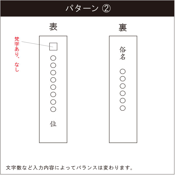 | 商品説明 | 【商品番号:3296】 お位牌本体ではありません。 必ずお位牌と一緒にご注文ください。 一度書いた文字は修正ができませんので、必ず下記をよく読んで文字の名入れをお知らせください。 【ご用意いただくもの】 戒名、没年月日、俗名(故人のお名前)、没年齢(故人の年齢)が分かる「白木位牌」「戒名用紙」を写真に撮ってご注文後メールにてお送りください。 メールはタイトルを「書き文字用、戒名・白木位牌写真」として、「注文者のお名前」「お電話番号」「今回ご購入の商品名」をご記入ください。 メールドレス sales@nihondou.co.jp 【オプション選択にて以下の内容をご入力ください】 ●ご希望納期 ●法要日 ●宗派 ●お位牌に入れる文字 戒名・法名 俗名(故人のお名前) 没年齢(故人の年齢) 没年月日 ●文字の色/表面 色、裏面 色 ●ご希望のレイアウトのパターン 【納期について】 納期は、お客様に書き文字の原稿確認をして頂き、文字確認原稿確定後「メーカー営業日の約2週間後の発送」となります。原稿の確認にもお時間を要します。余裕をもってご注文ください。 【原稿について】 基本的に弊社では「白木位牌」や「戒名用紙」に沿って原稿を作製致します。 故人の年齢の行年・享年の入れ方や戒名の下に「位」を入れるなど、先祖位牌に合わせて白木位牌より変更する場合があります。 また、以下のご説明では一般的な文字入れを記しておりますが、あくまでも一例です。どの文字を入れる・入れないというご指定は「お客様やご住職の判断」となります。事前に菩提寺やご住職にご相談の上、お入れする文字をご確認ください。 (弊社で作成した原稿を、菩提寺やご住職にご確認いただくと確実かと存じます) 【文字入れについて】 機械書きは札板に機械で箔(色のつく薄いシート)をなぞって文字を転写するので、文字はやわらかく整っている印象です。 長年使い、拭いたりしていると字が薄れていくことがあります。 【お位牌にお入れする文字】 ■戒名・法名 先代のお位牌に合わせるなど、戒名の下に「位」や「霊位」などを付ける場合は、ご入力の際に「位」や「霊位」までご入力ください。 ・真言宗は、一般的には大日如来を示す梵字の「ア」字を記入してます。 ・白木位牌に入っている「新帰元」「帰元」「新円寂」などの文字は一般的に本位牌には入れません。 ・一戒名のお値段です。二名書きより別途料金が発生します。 ■俗名(故人のお名前) ・生前の名前を入れ、一般的には名前の上に「俗名」と記入します。 ■没年齢(故人の年齢) 没年齢を記載の際は、以下の点をご注意ください。 ・先祖位牌に「行年」とあり、白木の位牌に「享年」とある場合等、先祖位牌に合わせて行年・享年を変更する場合があります。お寺様によって没年例の数え方が違うので、ご不明な点は菩提寺やご住職にお尋ねください。 記入例)「行年〇〇才」「行年〇〇歳」「享年〇〇才」「享年〇〇歳」「(行年・享年を付けない)〇〇才」「(行年・享年を付けない)〇〇歳」「(その他の文言)〇〇才」「(その他の文言)〇〇歳」「行年〇〇(才・歳を付けない)」「享年〇〇(才・歳を付けない)」等々 ■没年月日 亡くなった日を記入します。 ・白木の位牌の年月日の下に「没」「寂」などの文字が書かれている場合は一般的には省きます。 【梵字について】 梵字は、真言宗なら「ア」・浄土宗なら「キリーク」・浄土真宗なら「法名」など、宗派により異なり、さらに地域によっては入れない場合があるなど様々です。 ご不明な点は菩提寺やご住職にお尋ねください。 【文字の色について】 一般的には全て金色です。 ・金・朱・白・群青(位牌の札板の表が総金の場合)の4色からお選びいただけます。 ・表面:金文字が一般的です。 ・裏面:金文字が一般的です。 関東圏では、裏面に俗名・行年を入れて朱色を使う事が多いようです。 【家紋入れ】 家紋をお位牌に入れることでそのお家を表し、格式高くなります。 ・家紋入れは別途料金が発生します。 ・家紋部分は「書き」のみの対応になります。 |