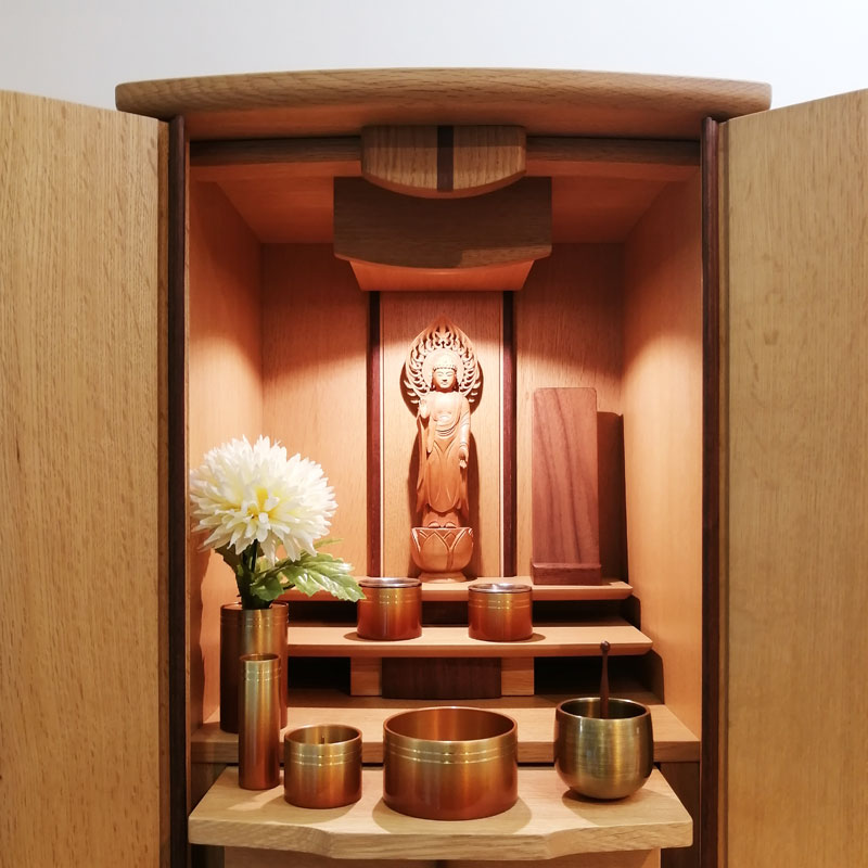 | 商品説明 | 【商品番号:3298】 ウォールナットの無垢材のぬくもりが感じられるモダンな位牌です。 本体を下台に差し込んで立てます。 また、細かい装飾のないシンプルな設計の為、 生前は叶わなかった、旅行の約束や出張先などに持って行くことも出来ます。 お位牌を持ち歩く場合には、移動中には白い布に包むか、巾着袋のような袋に入れることをおすすめいたします。 ●4.0号 (本体):高14.5cm×巾5.0cm×奥行1.3cm / 札巾5.0cm (下台):高1.5cm×巾5.0cm×奥行6.0cm (全体):高14.9cm×巾5.0cm×奥行6.0cm 19、750円(税込) ■商品詳細 ●商品タイプ:木製位牌 ●仕様:ウォールナット ●仕上:ウレタン塗装 ●国産 ※天然木のため一品一品の柄・色味が異なります。 ※寸法は商品と多少異なる場合がございます。 ※上記価格はお位牌本体の料金です。名入れの料金は含まれておりません。 名入れは別途「書き代」又は「彫り代」が必要です。 ※メーカー発注品となります。 ご注文・お問合せを頂いてからメーカーに在庫の確認を致します。(ご注文の流れをご参照ください) ※ご入金確認後にメーカー発注となりますので、お支払い方法で「商品代引き」以外を選択してください。 ※名入は、お客様に名入れの原稿確認をして頂き、文字確認原稿確定後「メーカー営業日の約2週間後の発送」となりますので、余裕をもってご注文ください。 |