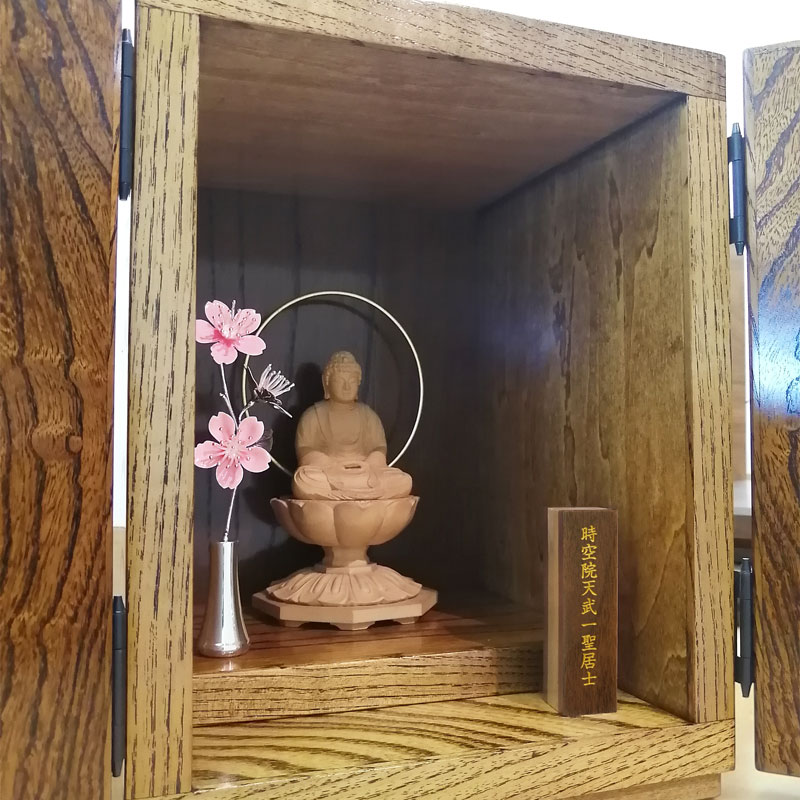 | 商品説明 | 【商品番号:3301】 寄木細工の、小さなお位牌です。 供養ステージやミニ仏壇によく合います。 また、手のひらに収まるくらいのサイズで細かい装飾のないシンプルな設計の為、生前は叶わなかった、旅行の約束や出張先などに持って行くことも出来ます。 お位牌を持ち歩く場合には、移動中には白い布に包むか、巾着袋のような袋に入れることをおすすめいたします。 ●2.0号:高7.0cm×巾2.0cm×奥行2.0cm 8、850円(税込) ■商品詳細 ●商品タイプ:木製位牌 ●仕様:ウォールナット ●仕上:ウレタン塗装 ●国産 ※天然木のため一品一品の柄・色味が異なります。 ※寸法は商品と多少異なる場合がございます。 ※上記価格はお位牌本体の料金です。名入れの料金は含まれておりません。 名入れは別途「書き代」又は「彫り代」が必要です。 ※メーカー発注品となります。 ご注文・お問合せを頂いてからメーカーに在庫の確認を致します。(ご注文の流れをご参照ください) ※ご入金確認後にメーカー発注となりますので、お支払い方法で「商品代引き」以外を選択してください。 ※名入は、お客様に名入れの原稿確認をして頂き、文字確認原稿確定後「メーカー営業日の約2週間後の発送」となりますので、余裕をもってご注文ください。 |