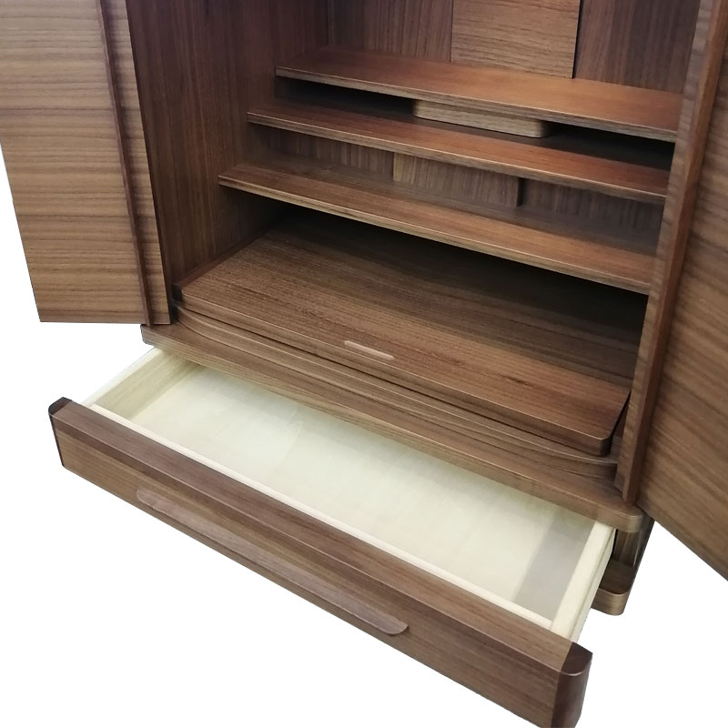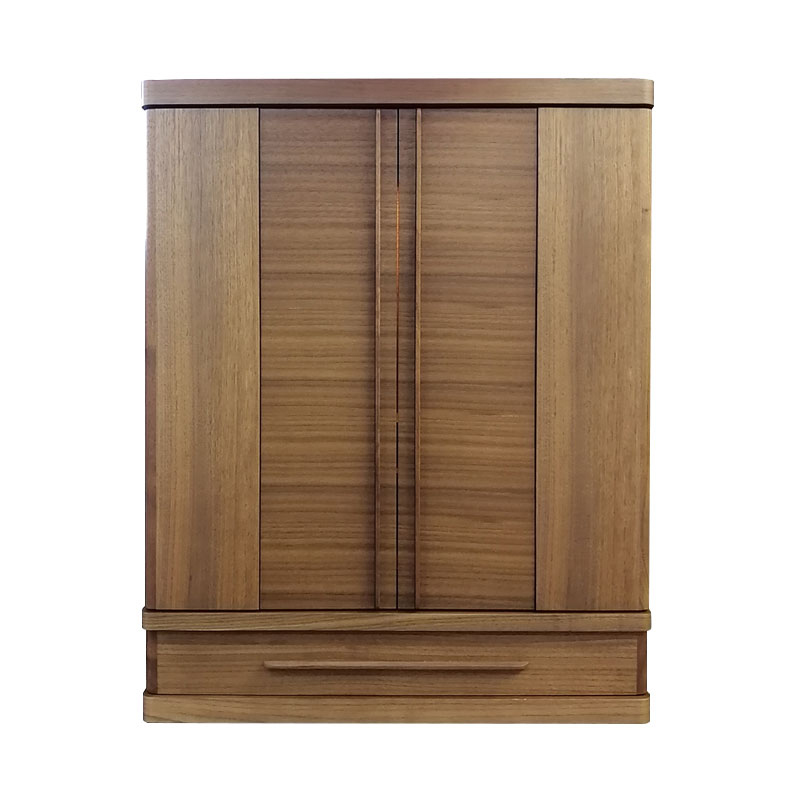 | 商品説明 | 【商品番号:3328】 ■材質詳細 ・笠、台輪/主材料:ウォールナット薄板貼り 芯材料:パーティクルボード、木質繊維板 ・戸板、扉/主材料:ウォールナット薄板貼り 芯材料:パーティクルボード、木質繊維板 ・その他/表面仕上げ:ウレタン仕上、生産地:日本 ■宗派 どの宗派でもお使いいただけます。 ■備考 ・商品は手作りの為、一部の色、デザイン、寸法が多少変更になる場合がございます。 ウォールナットの繊細な木目が美しいすっきりしたデザインのお仏壇です。 シンプルなデザインなので、洋室和室問わず設置することができます。 須弥壇は取外し可能で、ご本尊やお位牌の大きさに合わせて調整できます。 スライド式の膳引きに、お仏壇周りの小物を収納する引出も付いています。 |