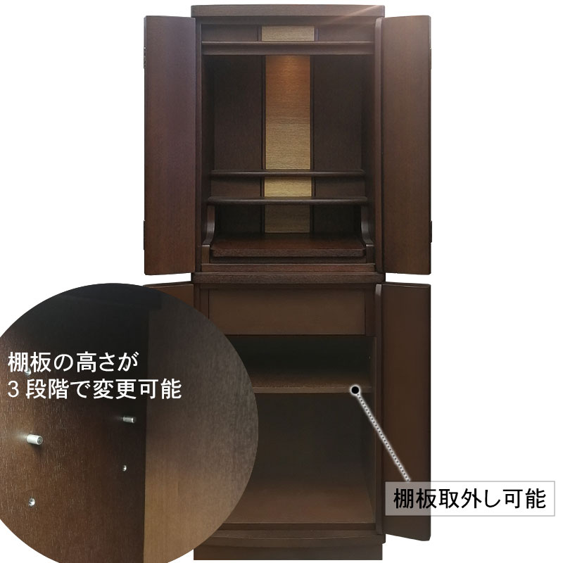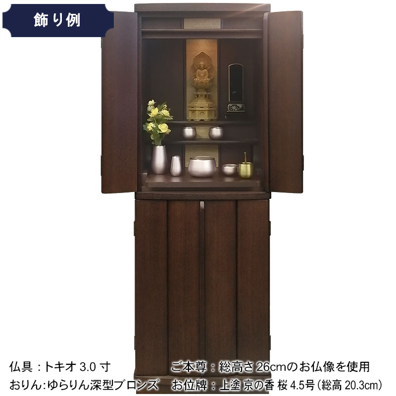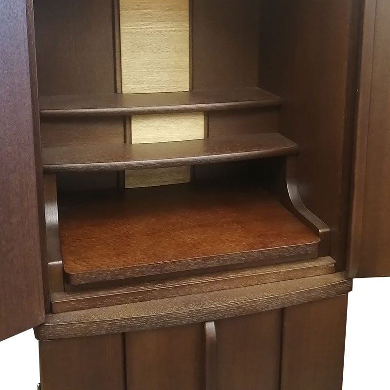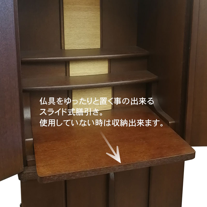 | 商品説明 | 【商品コード:3329】 ◎日本堂オリジナル商品 ■材質詳細 ●笠、台輪/主材料:タモ薄板貼り 芯材料:MDF ●戸板、扉/主材料:タモ薄板貼り 芯材料:MDF ●その他/表面仕上げ:ウレタン/オープン仕上げ、生産地:海外 ■宗派 どの宗派でもお使いいただけます。 ■備考 ・商品は手作りの為、一部の色、デザイン、寸法が多少変更になる場合がございます。 総高さ120cmと現代の住宅事情に合わせて、台付タイプのお仏壇としてはコンパクトな40号サイズのお仏壇です。タモ材を表面材に使用し落ち着いた色合いとなっております。 膳引きは、スライド式となっており、お祀りいただいた仏具をそのまま中に収納して扉を閉めることができます。 下台部分には引出収納を完備し、お仏壇用品など十分な収納機能となっております。また、下台の棚板は3段階で高さ調節可能で、棚板を外すと骨壷が収納できるスペースがあるので、納骨まで骨壺をご安置、または自宅墓としてもお使いいただけます。 内部照明には、LEDライトを使用しております。 |