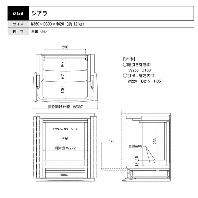 | 商品説明 | 【商品コード:3390】 ■材質詳細 ・材質/MDF アクリル ・仕上/ウレタン塗装鏡面仕上 ■宗派 どの宗派でもお使いいただけます。 ■備考 ・掲載写真の仏具などの組み合わせは一例で別売りとなります。 柔らかな白とパステルカラーがおしゃれ。透き通るような鏡面が上質感を漂わせます。 |