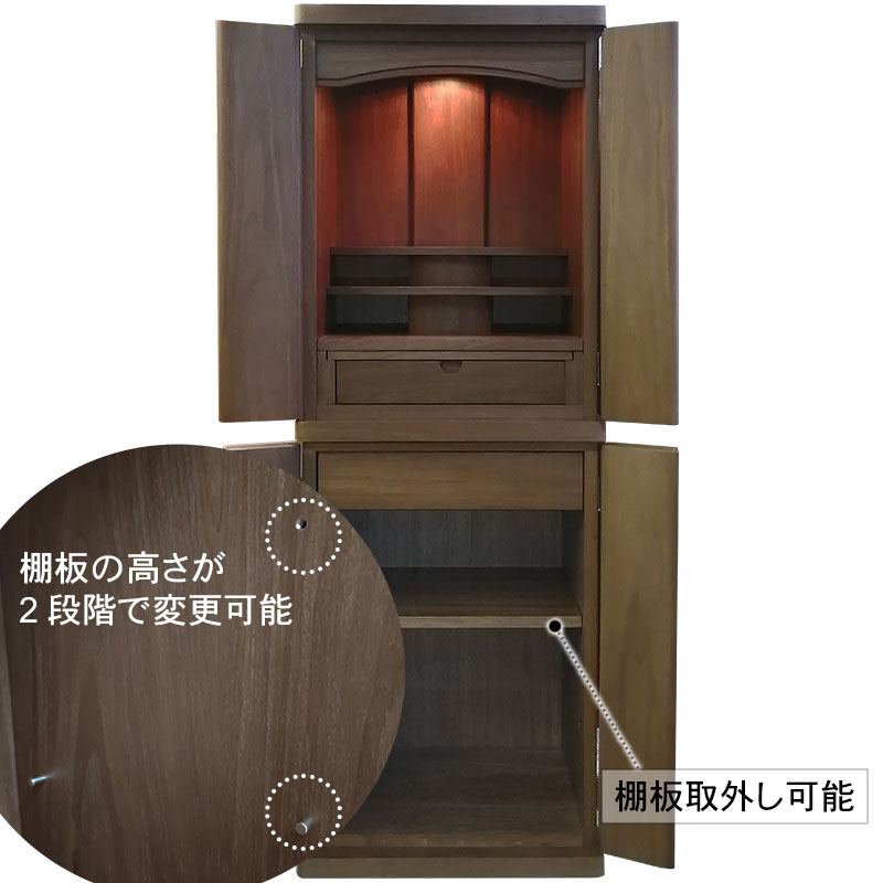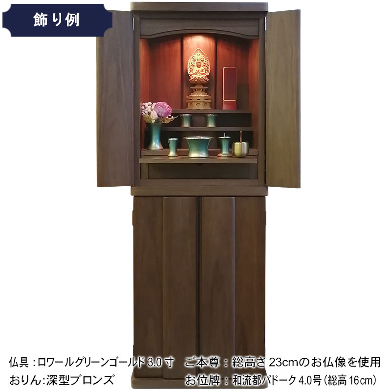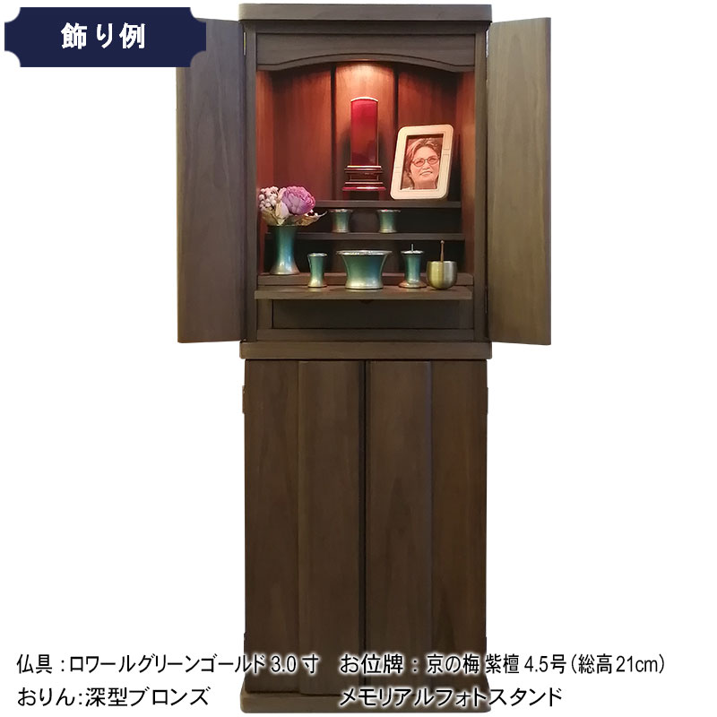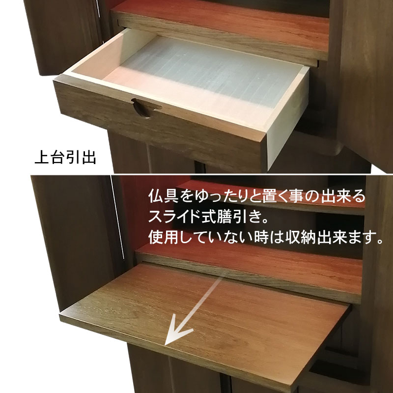 | 商品説明 | 【商品番号:3400】 ■材質詳細 ・笠、台輪/主材料:ウォールナット薄板貼り 芯材料:MDF ・戸板、扉/主材料:ウォールナット薄板貼り 芯材料:MDF ・その他/表面仕上げ:ウレタン仕上、生産地:海外 ■宗派 どの宗派でもお使いいただけます。 ■備考 ・商品は手作りの為、一部の色、デザイン、寸法が多少変更になる場合がございます。 世界三大銘木としても知られ、落ち着いた滑らかな木目が特徴のウォールナット材を使用たすっきりとしたデザインのお仏壇となっております。 引出収納が上台と下台の両方に設置されていて、お仏壇周りの小物をたっぷり収納出来ます。 内部照明には、ナツメ球を使用。暖かみのある色目でお仏壇内部を照らします。 |